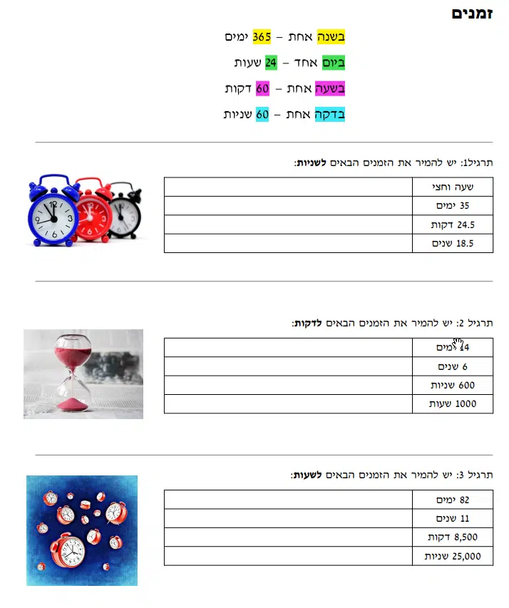 דוגמאות – המרת זמנים