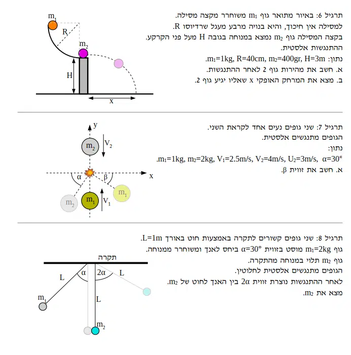 לדוגמה, אם שני גופים בעלי מסות M1 ו-M2 מתנגשים במהירויות ההתחלתיות V1 ו-V2 בהתאמה, ניתן לחשב את המהירות הסופית שלהם V באמצעות הנוסחה לעיל.
