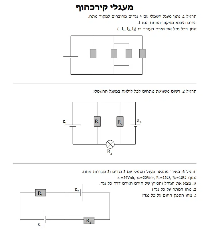 פתרון מעגלים מורכבים באמצעות חוק קירכהוף