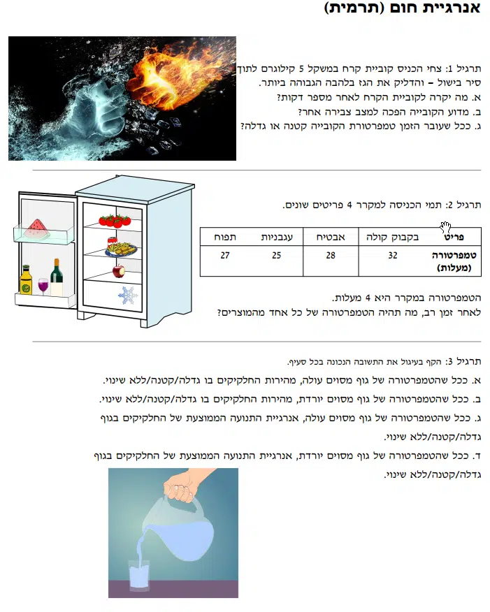 תרגיל לדוגמה מקורס פיזיקה לכיתה ט’