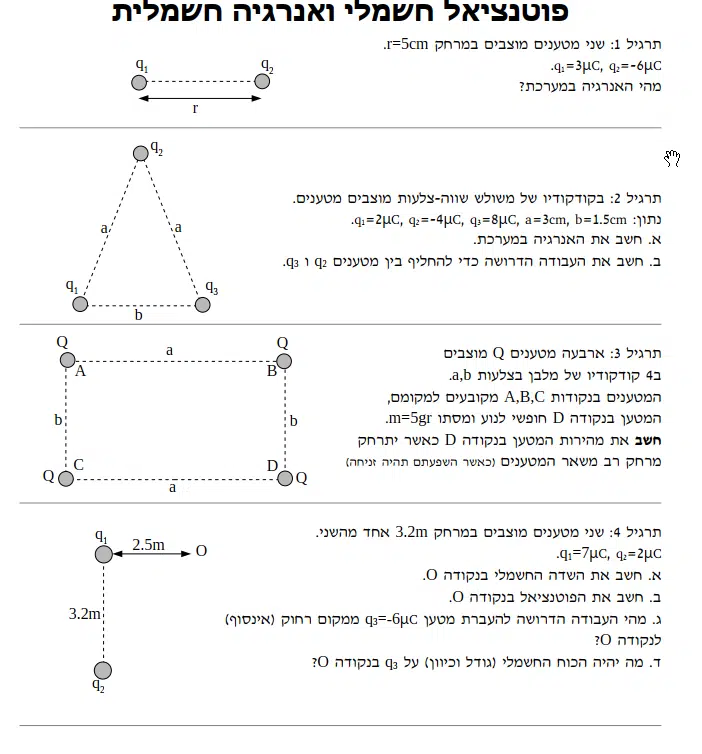 תרגיל לדוגמה מקורס פיזיקה חשמל ומגנטיות