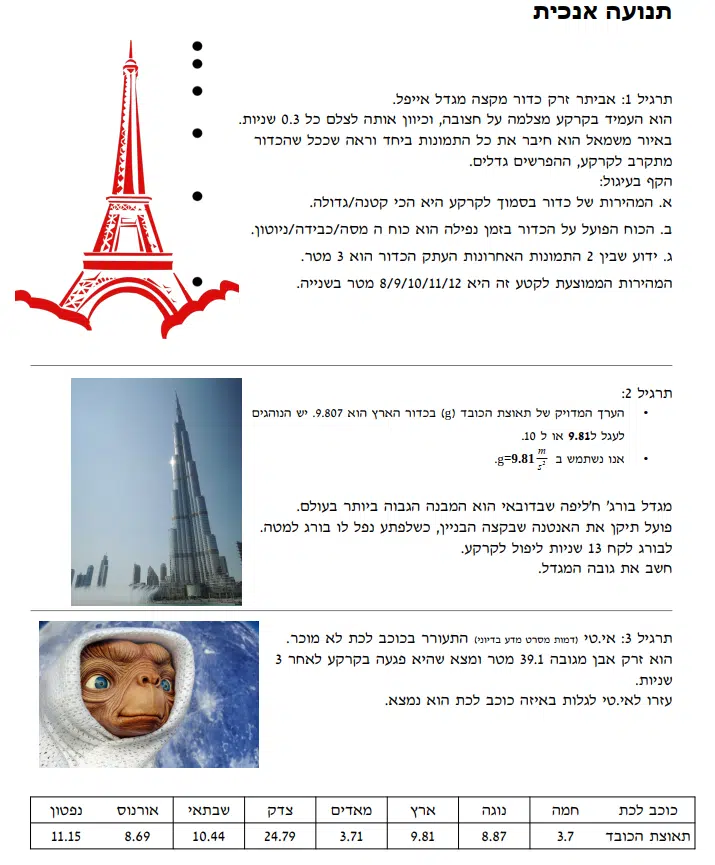תרגיל לדוגמה מקורס פיזיקה לכיתה ט’
